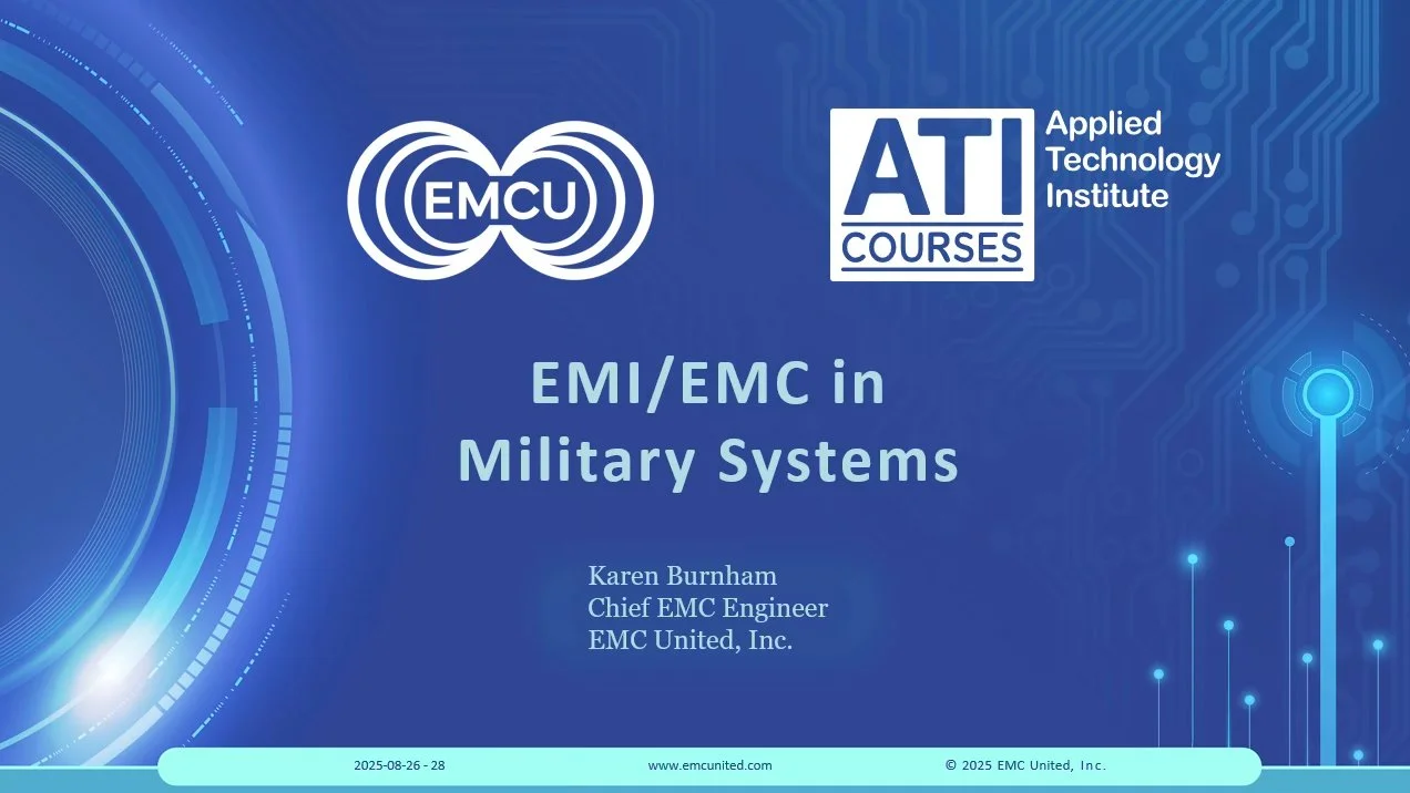Delivered through ATI Courses, this is a three day comprehensive course that teaches EMC fundamentals through the lens of the key military and aerospace standards such as MIL-STD-461, MIL-STD-464, and RTCA DO160.